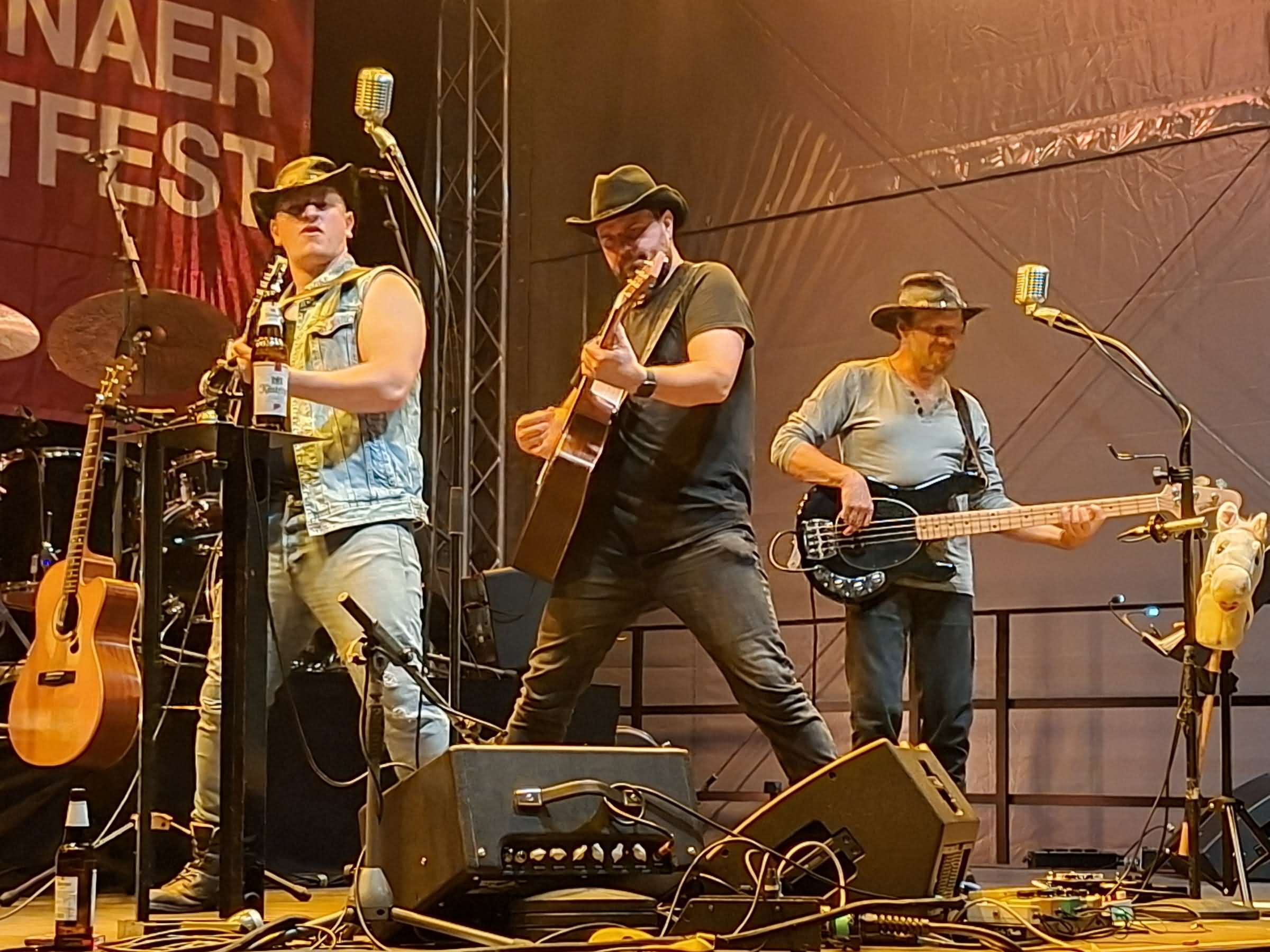 In Jena musste man den Eindruck gewinnen, dass die Männer immer noch ein Geheimtipp sind. Das ist sicherlich einer der Gründe, warum sie gerne in kleinen Kneipen vor 50 Besuchern spielen, obwohl es seit Gründung der Band 2010 bereits 600 Konzerte gab. Dass sie zu dritt rocken können, haben sie auf verschiedenen Festivals bewiesen, darunter beim großen Wacken Open Air. Fans waren aus Wanne-Eickel und aus dem Erzgebirge bis nach Jena angereist. Doch das einheimische Publikum reagierte zumindest anfangs noch zurückhaltend. Das ist beim Jenaer Altstadtfest nahezu schon traditionell und war so bereits bei den musikalisch überzeugenden Darbietungen von CrazyBirds und Berluc eine knappe Woche zuvor zu beobachten. Das Altstadtfest in Jena hat ohne Zweifel Charme. Noch dazu finden die Konzerte bei freiem Eintritt statt, aber den großen freien Platz unmittelbar vor der Bühne nehmen die Saalestädter nur zögernd ein.