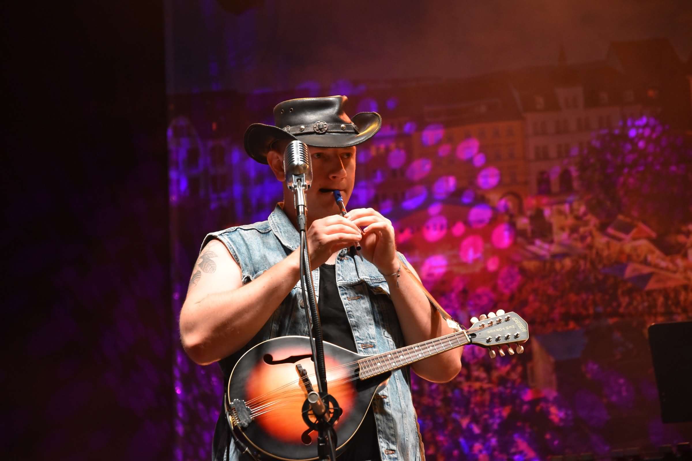Mandowar gestatteten sich nach einer Stunde Spielzeit eine kurze Pause. Um zum Kern zu kommen: Mandowar bestehen aus drei Musikern und einzig das Instrument Mandoline steht als Pate für den Bandnamen. Ein Wortspiel um die Mandoline also. Das mag zunächst überraschend klingen. In der Besetzung Mandoline, Akustikgitarre und Bass covern sie ausschließlich Metal- und Rocksongs, wobei es ein klares Übergewicht zugunsten der Metalfraktion gibt. Schließlich kommen wir doch noch zu Manowar. Deren stimmungsvolle Hymne "Warriors Of The World" aus dem Jahr 2022 erklang nach den zwei Liedern zum Auftakt von Ozzy Osbourne und Nirvana. Schon bei Manowar blieb kein Auge trocken, rieb man sich angesichts der kleinen Besetzung verwundert, besser noch erstaunt die zwei Sinnesorgane. Gespielt wurde mit viel Hingabe und das Original von Manowar war über die volle Spielzeit gut zu erkennen. Die Show von Mandowar kann man nicht in Worte kleiden, man muss es schon erlebt haben.