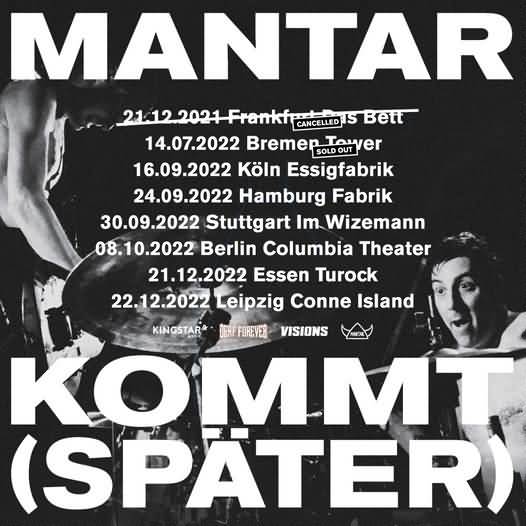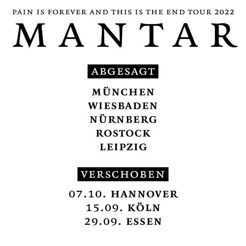 Update 15.03.2022 Mantar haben weitere Termine hinzugefügt, die Tourdaten sehen nun so aus: