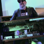 Mit einem Hammer-Hammond-Solo von Jens Skwirblies, der den Leslie-Lautsprecher ordentlich auf Touren brachte, einem Christian Schwarzbach-Alleingang mit vielen Blues-Läufen, einem Sebastian Bauer-Drum-Solo, gekennzeichnet von vielen Finessen und den Wah Wah-Fantasien eines Martin Engelien, dessen Solo furios endete, sorgten die vier Musiker schon für beste Stimmung in der tollen Location. So brachte es diese Nummer bereits auf gut zwanzig Minuten Spielzeit. Ein Ausdruck der Spielfreunde und der Lust auf Improvisationen. Die Vorstellungsrunde ließ die Erwartungen an die vier Musiker in die Höhe schnellen.