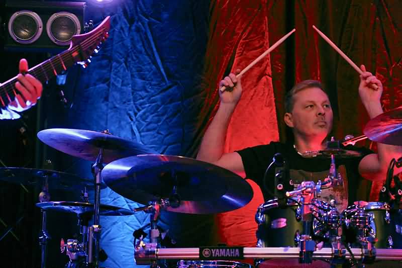 Die instrumentale Konzert-Eröffnung bot da schon eine Ausnahme von der Regel, denn das fünfzehnminütige "Footprint" beeindruckte durch seine eher getragene, luftig-leichte Auslage. Patrick Metzger gestaltete hier zeitweise durch den Einsatz von Paukenschlägeln andächtige Stimmung.