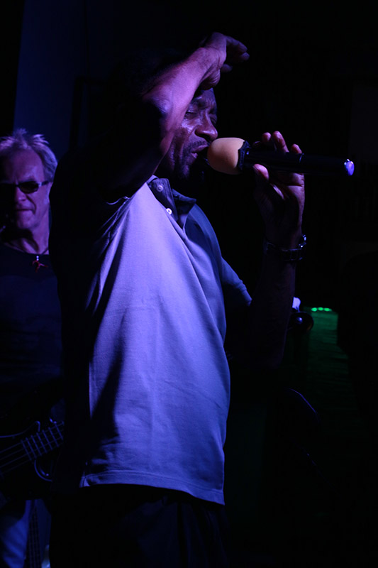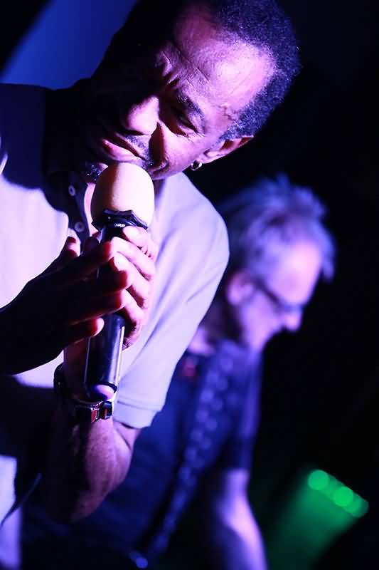 Dann wurde Johnny Rogers angekündigt und als er die ersten Textzeilen von "I Wanna Get Into You" sang, war die Gänsehaut ob seiner tollen Stimme schon entstanden. Klasse! Dieser Mann verfügt über Stimmbänder, die mit einer dicken Schicht aus Soul und Blues überzogen waren. Eine Go Music begeistert das Publikum ja nicht nur mit den ausgewählten Songs, sondern immer auch durch die Phasen der ausgedehnten Improvisation. Johnny Rogers war da manchmal ganz nah bei den drei Musikern und konnte entweder mit abgewandelten Texten beziehungsweise vokalen Stegreif-Ideen glänzen. Auch suchte und fand er einen optimalen Kontakt zu den Anwesenden, denn es dauerte nicht lange und Johnny Rogers sah man zum ersten Mal auf der Seite des Publikums.