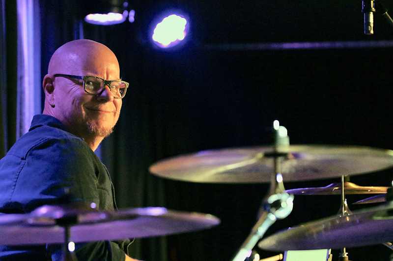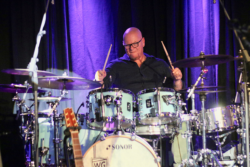 Schlagzeuger Werner Groisz verfeinerte die unterschiedlichen Stimmungen in den Songs auch durch den Einsatz von Paukenschlegeln oder Rods. Überhaupt gingen für ihn ebenfalls beide Daumen hoch, denn er begeisterte durch seine differenzierten Soli, Beats und besonders durch ganz unterschiedliche Grooves. Werner Groisz brachte durch sein Drumming viele Farb-Pointierungen in die Songs. Er hatte sich eine weitere Eintrittskarte für kommende Go Music-Konzertreisen ertrommelt.