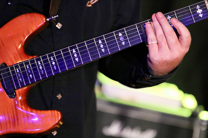 Mit seinen Riffings sowie vielen Alleingängen spielte Dirk Edelhoff beseelt und hoch energetisch. Aus der Ruhe propellerte er sich in ungeahnte Höhen. Seine fantasievollen Fretboard-Fahrten, auch mit dem Bottleneck, waren geprägt von Sanftheit, einer begeisternden Dynamik sowie Power. Er spielte sich in einen Himmel der Emotionen. Super!