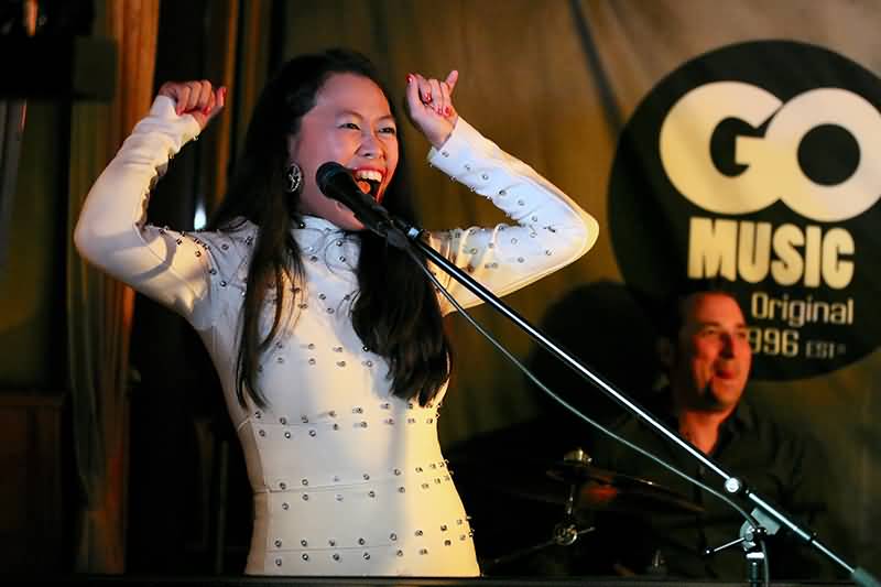 Zu Beginn einer weiteren Nummer servierte Michelle Poh perlende Keyboard-Klänge und Queens "We Will Rock You" wurde von der Band sozusagen verzaubert, hypnotisiert, denn mit jazzigen Tasten-Variationen und einem Klaus Zimmermann als Reiseführer in fernöstliche Gefilde trumpfte die Gruppe mit einem Arrangement dieses Klassikers auf, den man nicht so schnell wiedererleben wird. Außer bei einem Go Music-Gig.