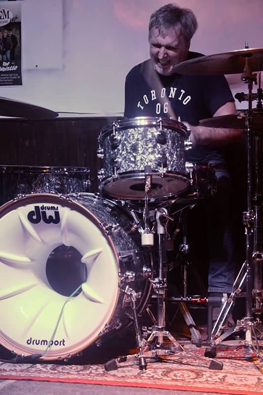 Wie in den Monaten zuvor war "Courage" der instrumentale Opener des Abends. Hier stellte sich Kai Sonnhalter solistisch mit einem sowohl gedankenversunkenen als auch furiosen Drive aus der Rock-Szene vor. Auch Charly T. wählte für seine erste Einführung die ruhigere Seite der Straße. Die Dynamik stieg und angeführt von Double Bass-Aktion flogen die Drumsticks förmlich über Felle und Becken. Szenenapplaus! Bei Martin Engeliens Vorstellung des Drummers gab es eine ad hoc "Sexy"-Blitzlicht-Einlage. Der Go Music-Organisator sorgte dann für die Good Vibration in der Magengrube.
