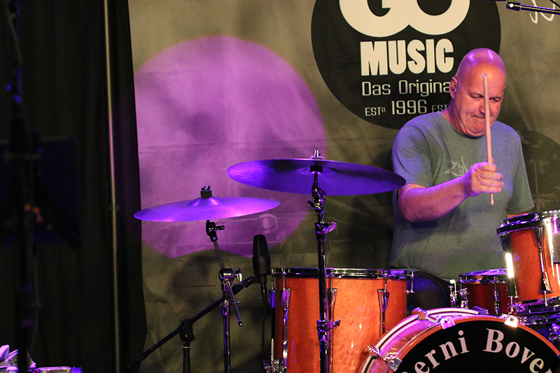 Am Schlagzeug erlebten wir Berni Bovens. »[…] Er hat in seinem Heimatland Holland, in Belgien, Österreich, der Schweiz und auch in Deutschland mit unzähligen Bands unterschiedlichste Musik gespielt. Sein Name steht besonders in Holland und Belgien seit vielen Jahren ganz oben in den Adressbüchern von Musikproduzenten und so ist es nicht verwunderlich, dass die Zahl der von ihm eingespielten CDs geradezu schwindelerregend hoch ist. […]«