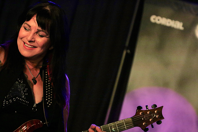 In Gedenken an Tina Turner rief die Combo das von John Fogerty für Creedence Clearwater Revival geschriebene "Proud Mary" auf. Roni Lee sang solo, nur begleitet von der E-Gitarre. Die Künstlerin setzte bezüglich ihres Gesangs persönliche Akzente. Gänsehaut! Beim flotteren Teil stieg die Band mit ein und die Gitarristin lieferte ein um das Song-Thema herum verspieltes Solo ab. Berni Bovens' Einsatz auf den Becken klang wie ein Glockenspiel. Highlight! Bei "Seperate Ways" zeigte das Hinweisschild deutlich in Richtung Rock. Martin Englien und Berni Bovens waren die Triebfeder des Rock und in "One Way Or Another" konnte man sich an der rauen Roni Lee-Stimme erfreuen. Mit dem Keyboarder Jürgen Dahmen lieferte sich der Bassist einen tollen Schlagabtausch auf ihren Instrumenten und ein Intermezzo, bei dem sich Roni Lee dazu gesellte, klang es wie ein Hummel-Flug.