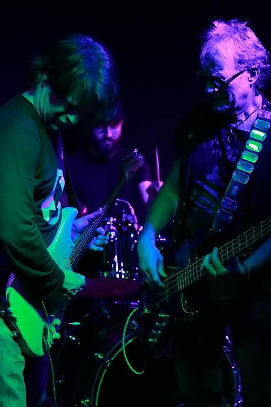 Martin Engelien ließ sich da nicht lange bitten und legte auf seinem Bass ein Solo der tiefen und hohen Töne vor. Gespickt mit feinen Phrasierungen einiger Songs aus der Rockmusik und furiosen Wah Wah-Pedal-Aktivitäten, war der "Grateful"-Opener schon ein Genuss für Augen und Ohren, denn selten hat man ja die Gelegenheit, Kochkaräter der Künste so hautnah zu beobachten.