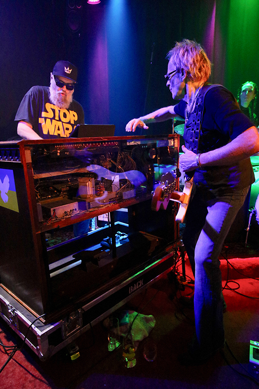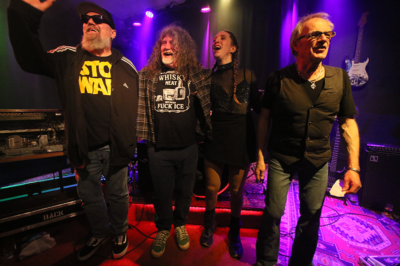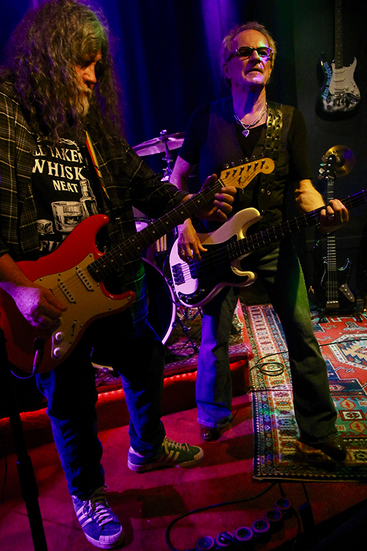 In Bruce Springsteens "Born To Run" wirbelte Martin Engelien seinen rechten Arm im Windmühlen-Modus, so wie es Pete Townshend rauf hat und bei ZZ Tops "Jesus Left Chicago" feuerten Bryn Jones sowie Jens Skwirblies ihre Solo-Läufe wie Blitze durch die Culucu Bar. Zusätzliche Action gab es am Bühnenrand, als sich der Gitarrist und Martin Engelien nebeneinander positionierten und ihre Instrumente mit gegenseitig eingehakten Armen spielten.