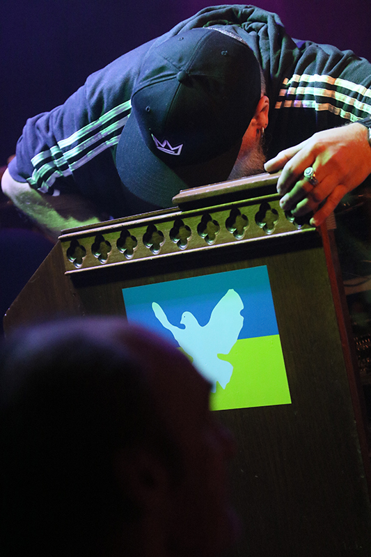 Vor dem Konzert brauchte es einige helfende Hände, um die betagte Hammond sowie den Leslie-Lautsprecher aus dem Anhänger in die Location zu bringen und schließlich auf die Bühne zu wuchten.