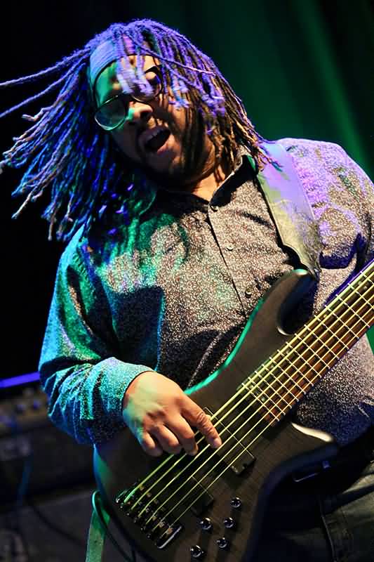 Terence 'Sweet Tea' Grayson zupfte gleich sechs dicke Saiten, die er hier und da auch im Slapping-Stil zum Schwingen brachte. Er war so etwas wie der Funk-Meister von The Train und sorgte zusätzlich noch für einen abwechslungsreichen Groove.