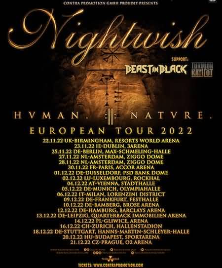 Nightwish haben die Termine für ihre verschobene Europa-Tour bekannt gegeben.
