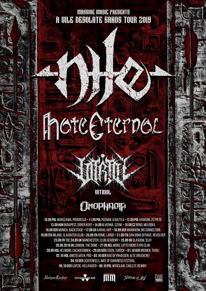 Unter dem Motto 'A Vile Desolate Sands Tour 2019' gehen Nile, Hate Eternal, Vitriol und Omophagia auf Europatour.