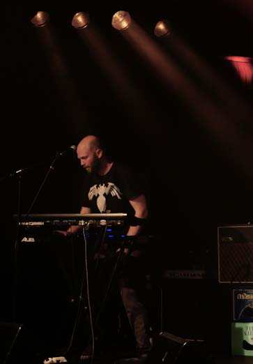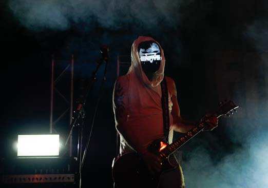 Weiter ging es mit einer besonderen Band aus Augsburg und Schrobenhausen, bei der man schon beim Aufbau dachte, was passiert hier jetzt? Grelle weiße, auf das Publikum gerichtete Strahler, bunte Disco LED-Lichter sowie vier Rauchfontänen schmückten die Bühne. Die vier Musiker, die 'Electric Callboys', um die Sängerin Nina Chuba starteten beim ersten Song in Silber gekleidet und mit Roboter-ähnlichen, interaktiven Bildschirm-Masken ihre Reise in die Welt von ENFYS: Electro, Pop und eine gute Prise Metal.