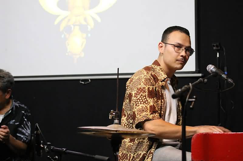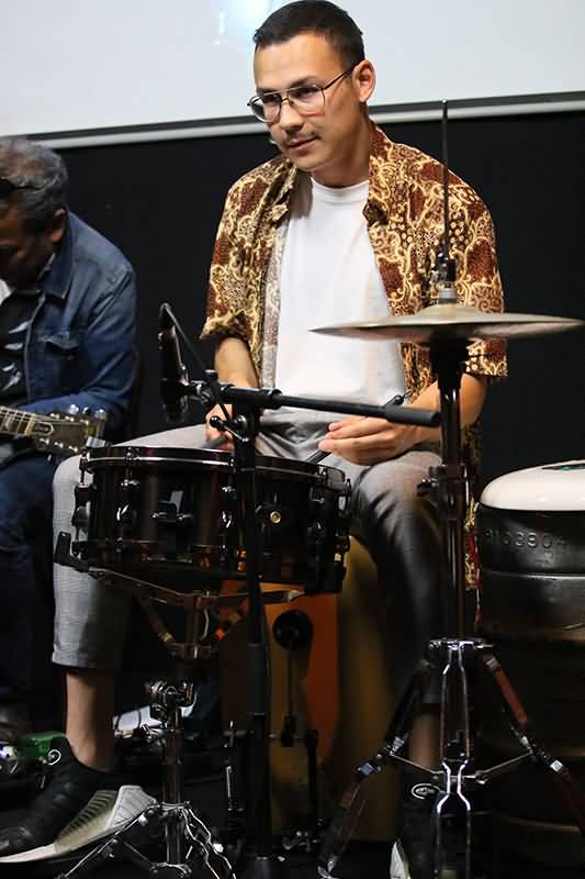 Er setzte ziemlich viele Instrumente ein. Vornehmlich konzentrierte sich sein Spiel auf die Percussion-Seite.