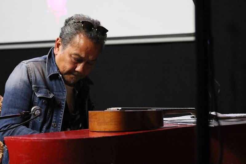 Hinter der Bühne hing eine Leinwand auf der zum Instrumental "Bengawan Solo" das Bild eines Waldes mit schmalem Wasserfall, der in einem kleinen See mündete, auftauchte. Die Sehnsucht der Johnny Laporte-Gitarre spiegelte sich in weiteren Leinwand-Impressionen wider. So gestaltete sich die Konzert-Eröffnung überraschend ungewöhnlich, aber hoch intersiv.