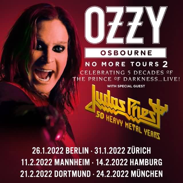 The forthcoming Ozzy Osbourne tour dates with guests Judas Priest due January 2022 have been postponed. OZZY says "Due to the ongoing uncertainty with full capacity events and travel logistics in much of Europe, we have come to the difficult decision to postpone my 2022 tour to 2023. Original tickets remain valid for the new dates. I want to thank all of you and Judas Priest for your continued patience and support."