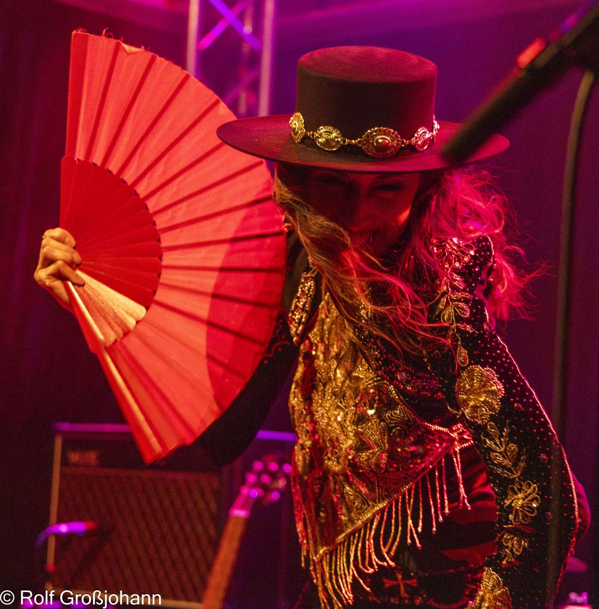 Bei "Guitars & Castanets" einem Flamenco-lastigen Titel gab Patricia noch eine kurze Einführung zum Gebrauch ihrer Percussion, um dann die Bühne zu verlassen, um eine Runde Kastagnetten klappernd durch die Location zu spazieren.
