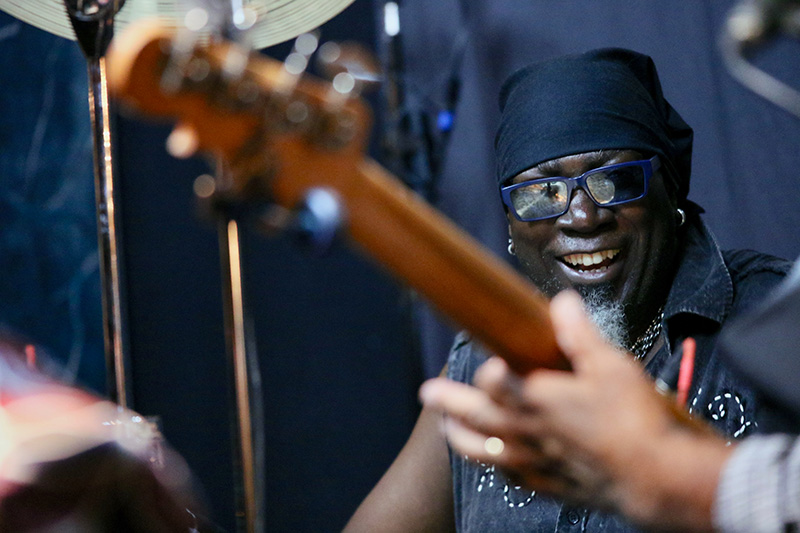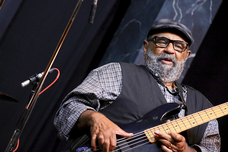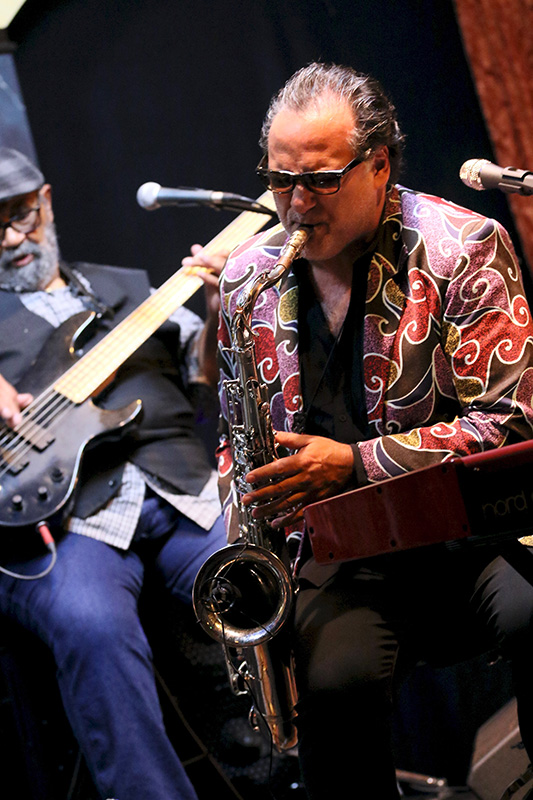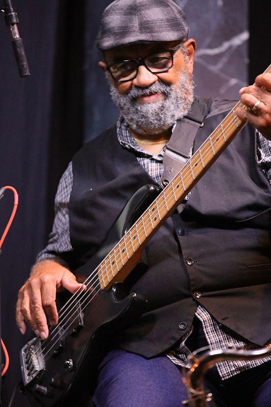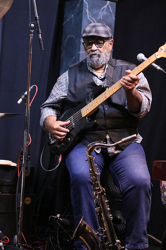 Alvino Bennett servierte vom Chicago-Shuffle bis zum rockenden Beat alle möglichen Variationen und Billy Haynes lieferte von butterweichen bis hin zu geslappten Klängen Vielfältiges ab. Zeitweise schlug er gar mit xer flachen Hand auf die dicken Saiten. Einfach beeindruckend, diese Rhythmus-Section.