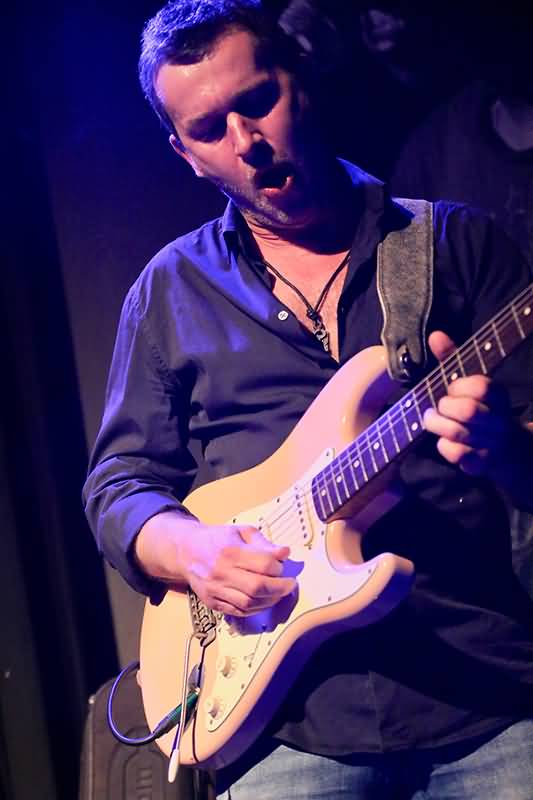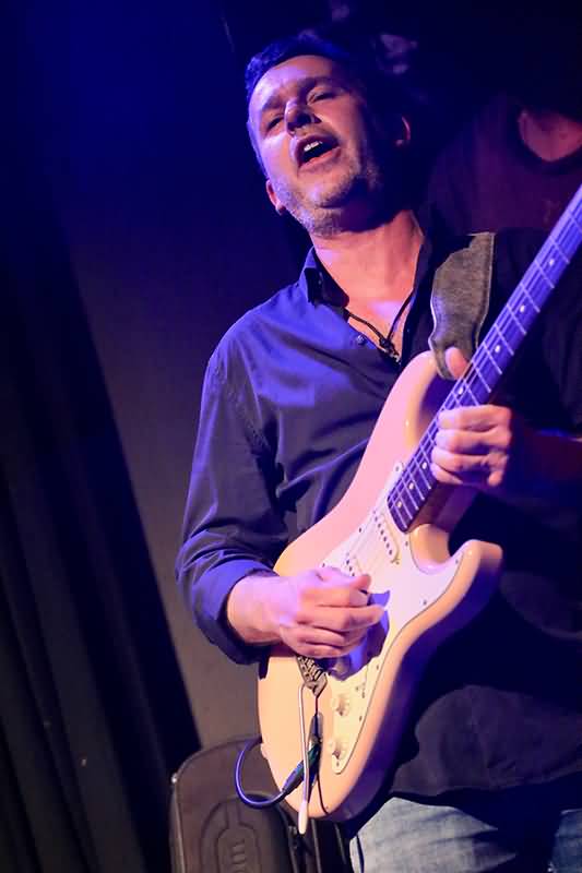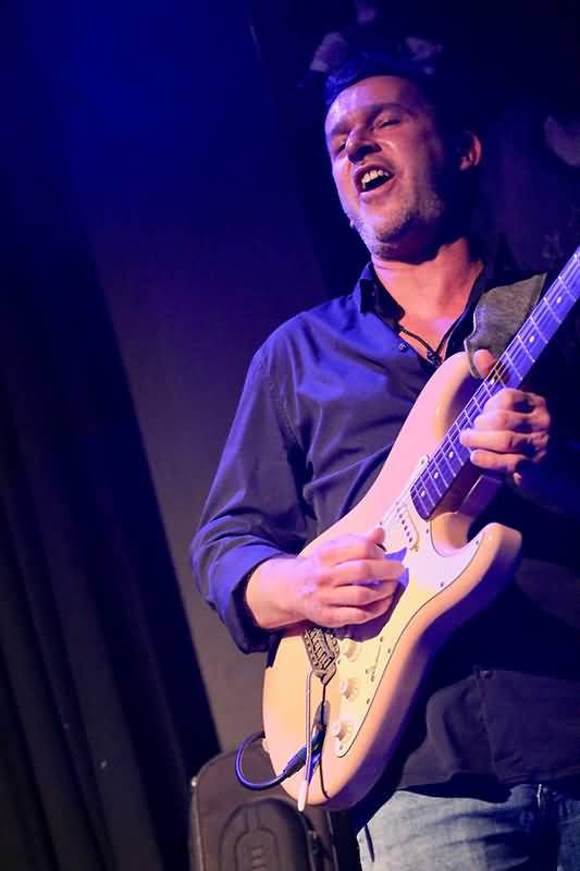 Die Freunde der Slide-Gitarre richteten ihr Augenmerk während der über zwei Stunden Live-Blues auf John F. Klaver. Ob sinnlich-sentimental oder zupackend rockig setzt der Mann auf der rechten Seite der Bühne immer wieder besondere Ausrufezeichen. Bei zwei Sechssaiter-Spezialisten gab es viele Soli, in denen sowohl John F. Klaver als auch Berland Rours in unterschiedlicher Weise Adrenalin ausschütteten. Beim Letztgenannten musste man des Öfteren den Blick zur Decke richten, ob die von der geballten Gitarren-Energie nicht abhob.