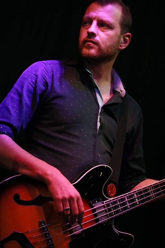 Der letzte Glockenschlag der benachbarten Kirche war noch nicht ganz verhallt, da legten Richard van Bergen & Rootbag um 20:00 Uhr mit "Maybe Someday" vom Album "Walk On In" los. Bei mittlerer Geschwindigkeit versetzte einen das Trio stante pede in die sumpfigen Gefilde des Mississippi. Ein erstes Richard van Bergen-Solo ließ erahnen, was noch an feinen Fretboard-Fahrten auf die Besucher zukommen sollte. Der Frontmann hatte diesbezüglich echt die Spendierhosen an.