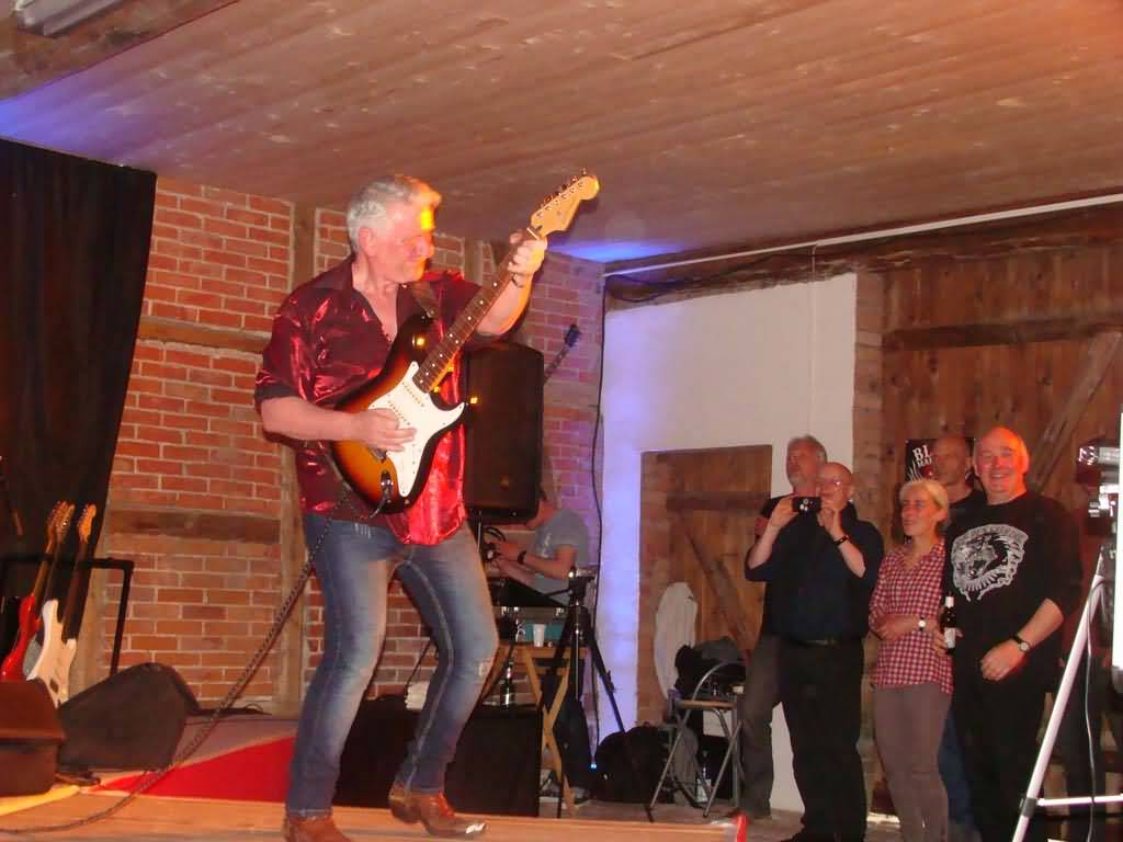 Doch aus den verschiedensten Gründen klappte es dann jahrelang nicht mehr, das Power Trio auf der Bühne zu beobachten. Aber zum Glück gibt es ja Anne und Henner, die mal wieder Bock auf ein Privatkonzert in der Traktorscheune hatten und außerdem über einen excellenten Musikgeschmack verfügen. So kam es wie es kommen musste, Rob Tognoni und seine Band beendeten ihre Frühjahrstour 2017 an diesem Samstagabend in Alfeld und wir kamen nach sechs Jahren endlich wieder in den Genuss, diesen sympathischen Musiker live zu sehen.. Auch das Wetter spielte mit und wir konnten den Nachmittag, gemütlich draußen sitzend, in vollen Zügen genießen. Auch die Band mischte sich gut gelaunt unters Volk, sodass einige sehr interessante Gespräche stattfanden. Es herrschte also mal wieder eine extrem lockere Atmosphäre.