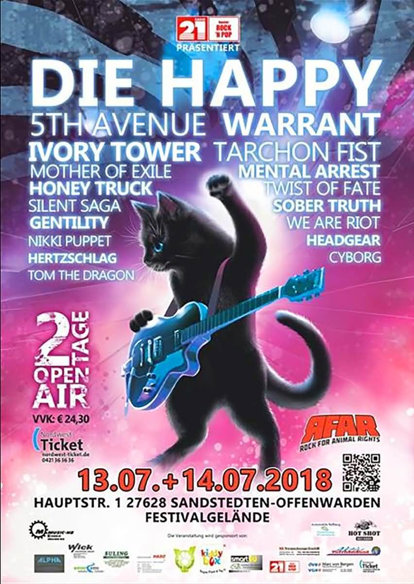 Rock For Animal Rights und Radio 21 veranstalten bereits zum siebten Mal das Rock For Animal Rights Open Air Festival in Sandstedt / Offenwarden (zwischen Bremen und Bremerhaven). Das Open AIr findet am 1. und 14. Juli 2018 zugunsten des Tierrechtsbund Aktiv e.V. statt.