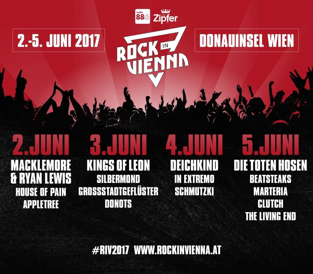 Die vier Headliner, als auch die jeweiligen Tagesbillings für das Rock In Vienna 2017 stehen fest: Macklemore & Ryan, Kings Of Leon, Deichkind, Die Toten Hosen