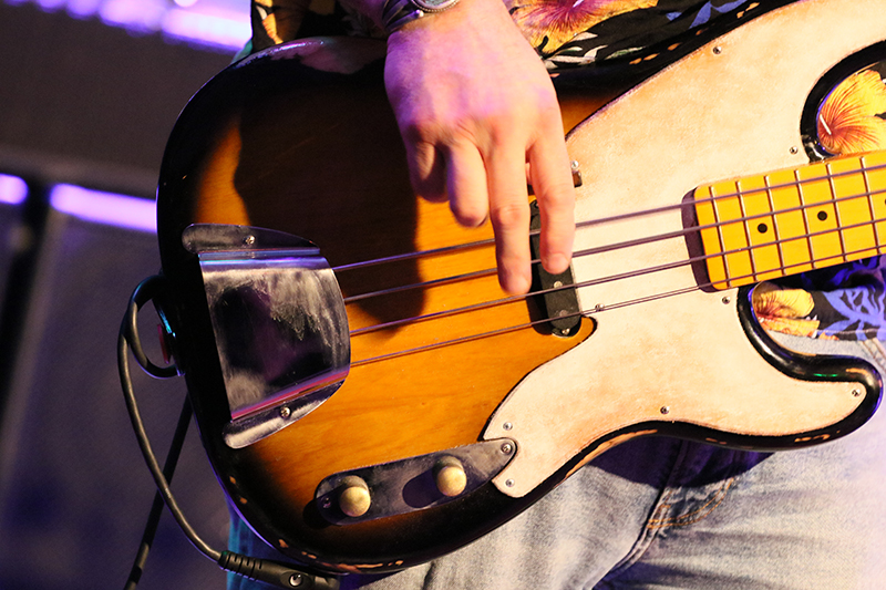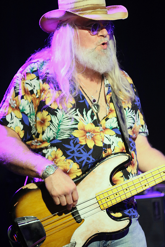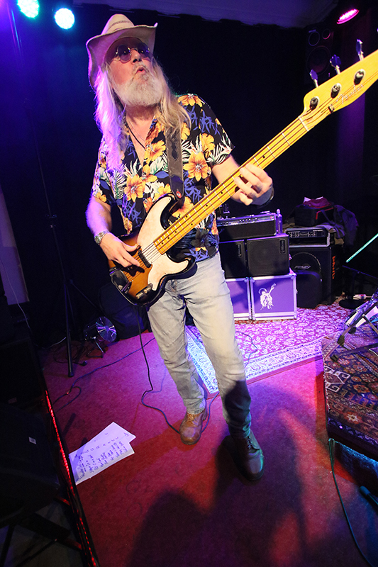 Anders verhielten sich die Dinge beim Bassisten Struik McStruikson. Auch er hatte den Groove, konnte sich allerdings durch ein längeres Solo bestens in Szene setzen. Flotte Bass-Passagen wechselten sich mit fast knochentrockenen Fretboard-Fahrten ab. Auf einem der Lautsprecher-Koffer ist Phil Lynott von Thin Lizzy abgebildet. Struik McStruikson sowie Luke Salvatore glänzten mit einer Vielfalt an Grooves. Beide Daumen hoch.