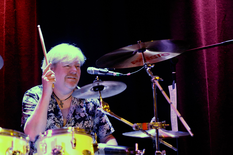 The Groove Train machte seinem Namen alle Ehre. Was Luke Salvatore an differenzierten Beats präsentierte, hatte quasi Hand und Fuß. Sein Drumming war in den rockenden Liedern richtig kraftvoll, auch mit Double Bass-Einsatz, und wenn es um den Slow Blues ging, wusste Luke Salvatore, wie man ebenfalls dezent Akzente setzen konnte. Sein Solo war mehr ein Blitzlicht, als Intermezzo.