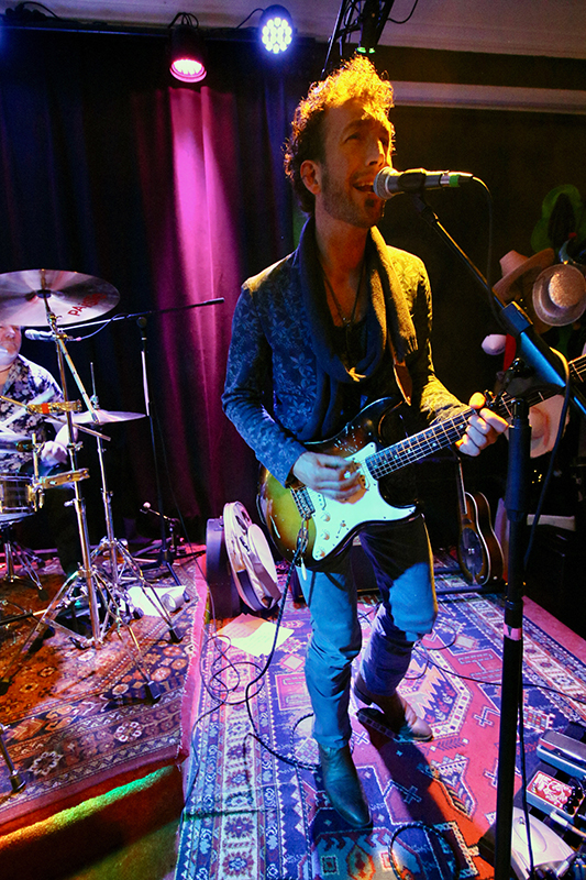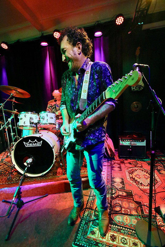 Bereits die erste Solo-Einlage von Ruben Klay ließ erahnen, was da noch so auf die Anwesenden zukommen würde. Ruben Klay entfachte so manches Feuerwerk auf den sechs Saiten seiner E-Gitarre. Da spürte man seine Spiel-Power bis unter die Haut. Ein ums andere Mal setzte er ein Blues- beziehungsweise Blues Rock-Ausrufezeichen und servierte sozusagen wie am Fließband Zwölftakter-Leckerbissen. Seine ausgezeichneten Alleingänge waren geprägt von Leidenschaft sowie Feeling, das ganz besonders bei den Balladen eine Hochzeit hatte. Da war auch Feingefühl angesagt. Durch gekonntes Riffig ließ er den Funk hochleben und verschärfte ihn durch einige Wah Wah-Pedal-Einsätze. Ruben Klays leicht angeraute Stimme passte perfekt zum Blues und nicht nur einmal zeigte er sein gesangliches Können, wenn es darum ging, die Gitarrentöne unisono mit der Stimme zu begleiten. Klasse!