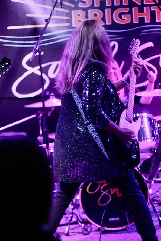 In besonderer Weise fokussierte sich die Aufmerksamkeit des Publikums bei der Nummer "You Don’t Get My Love" als Robyn McDonald den Platz hinter dem Drumkit für Sarah Smith freimachte. Wie jetzt? Rollentausch? Tatsächlich, Sarah Smith schnappte sich die Drumsticks und trommelte einen qualitativ hochwertigen Groove. Hut ab, Sarah! Diese Performance auf den Fellen und Becken war eine Einlage der Extraklasse. In dieser Phase zupfte Lonnie Glass die vier dicken Saiten seines Arbeitsgerätes extrem dynamisch und dann ging er in den geslappten Modus über. Den heißen Funk übernahm Stewart McLellan. Dieser Track hatte was von Improvisation, einem Happening. Zu dem Zeitpunkt war es vor der Bühne einfach voll.
