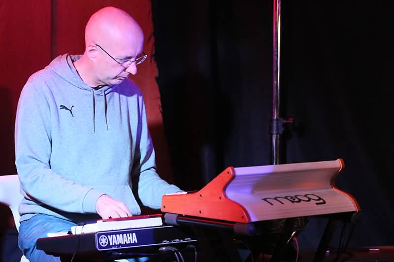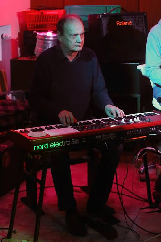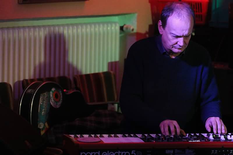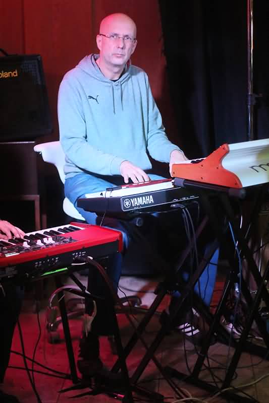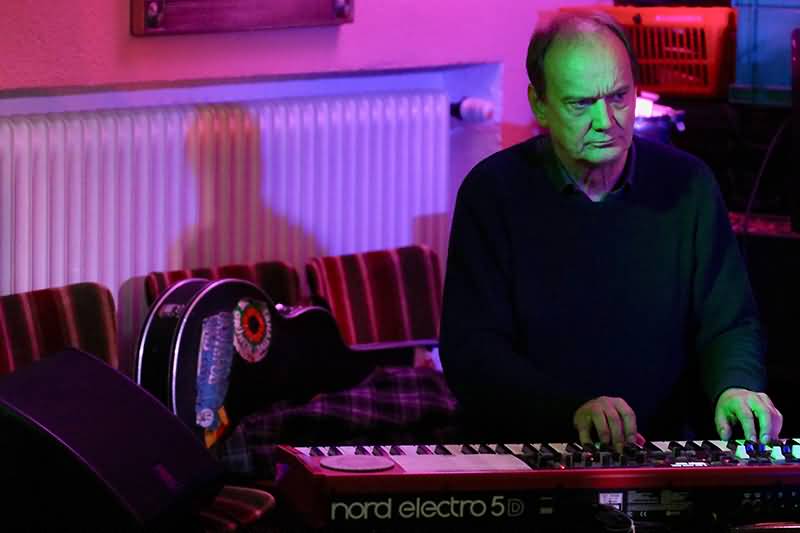 "Julls Boogie". Der Frontmann begab sich zu Reinhard Kenkmann und der hatte die passenden Synthesizer-Antworten auf Olaf Kalembas E-Gitarren-Fragen. Ganz allgemein war der Tastenmann äußerst kreativ und zeitweise vehement-stürmisch bei seinen Synthesizer-Einlagen.
