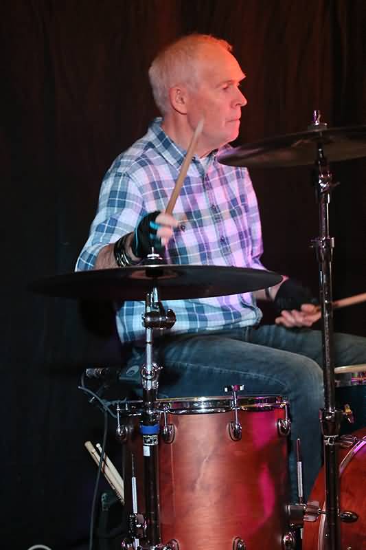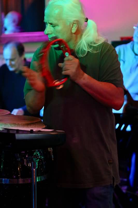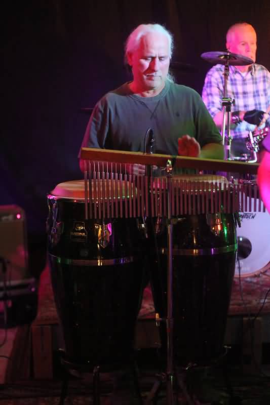 Nach einem weiteren Song-Genuss mit dem Titel "Hollow", arrangiert mit einem ruhigen Part für Olaf Kalembas Höhenflug-Alleingang, rückte Michael Becker in den Vordergrund. Er begeisterte durch ein virtuoses Solo auf seinen zwei Congas. Szenenapplaus war die Belohnung für diese eindrucksvolle Einlage.