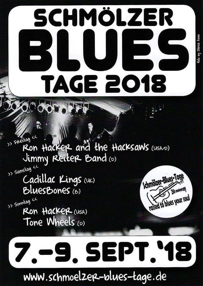 Auch in diesem Jahr finden vom 7. bis 9. September 2018 die Schmölzer-Blues-Tage statt. In diesem Jahr jährt sich das Event bereits zum 25. Mal und steht unter dem Motto »Raised to blues your soul«.
