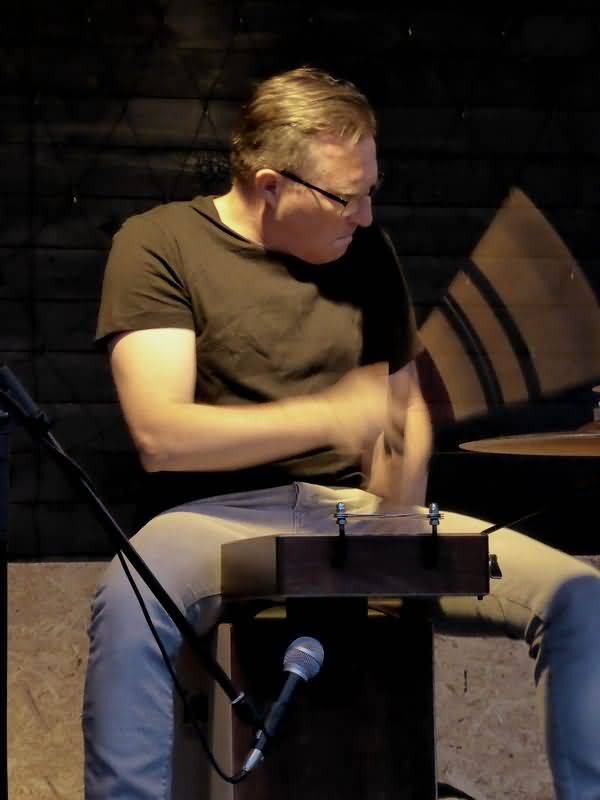 Einige meiner Lieblingssongs am Abend waren "Glimpse Of Your Face", "I Got Nothing", "Walter Mitty" und das ganz zum Schluss vorgetragene hochemotionale "Groundhog", für mich eins der bisher besten Stücke von Scott, im Übrigen nur von ihm allein mit seiner Gitarre präsentiert. Das war dann auch der einzige Titel, den er allein vortrug, denn ansonsten begleitete Bart Reniers auf seiner neuesten Errungenschaft, einem Drum-Set von Loota, einer finnischen Firma. Das Set sieht aus wie ein Cajon, beinhaltet jedoch eine Bass Drum, eine Snare Drum, ein Becken und ein Hi-Hat. Somit ist es ein perfektes Instrument für kleine Gigs und kann schnell auf- und abgebaut werden. Bart und Scott waren sehr gut aufeinander abgestimmt und je nach Art des Songs begleitete Bart entweder druckvoll oder zurückhaltend und gestaltend. Zum Schluss noch einmal mein besonderer Dank an Mozart von der Scharfen Ecke dafür, dass er dieses Konzert ermöglichte.