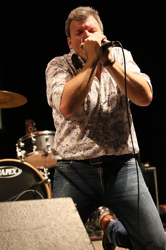 Wilfried Claesen sorgte stets für den passenden Beat/Groove und Luc Boonen entpuppte sich als ein Meister der herrlichen Harp-Fills. Er setzte sein Highlight, als er in der Nähe des Bühnenrands ein beseeltes Solo im Knien spielte. Perfekt! Beifall!