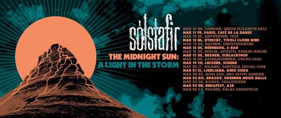Ein sehr schönes Tourplakat und einen schönen Titel haben Sólstafir auf ihrer Tour 2019: The Midnight Sun: A Light In The Storm.