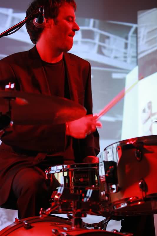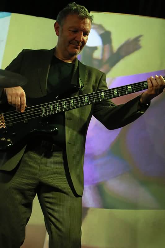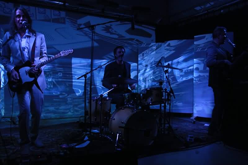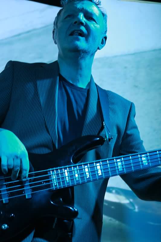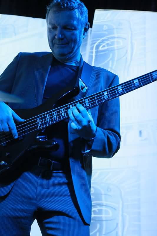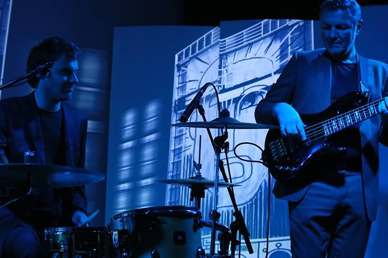Mit dem ersten Track und seinem enormen Drive war man schon auf Betriebstemperatur und im Laufe des Gigs sollte sich die Raumtemperatur nicht nur durch die Scheinwerfer erhöhen. An dieser Stelle muss der Name des Special Guest fallen. Hendrik Dorgathen sorgte mit seinen Video-Animationen für eine bewegt-visuelle Umsetzung jedes einzelnen Songs. Unglaublich, welche Wirkung Live-Musik und Video-Visualisierung hatten. Da gerieten Raum und Zeit doch glatt in Vergessenheit. Man war gefangen von Bild und Ton. Hier nochmals Beifall und Anerkennung für Hendrik Dorgathen. Hats off!