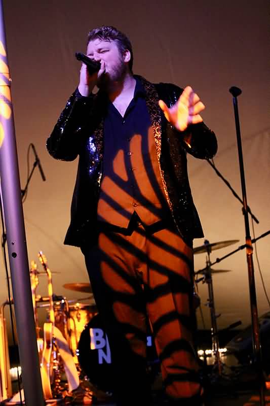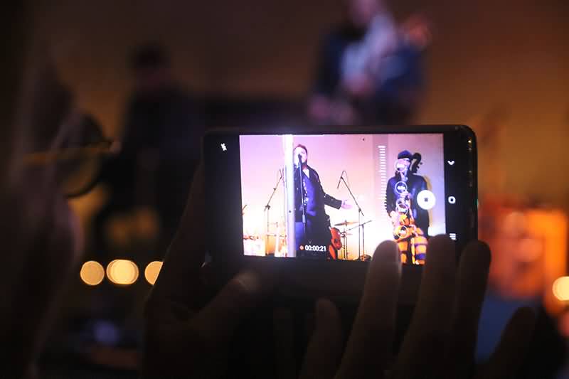 Man wollte The Bluesanovas immer noch keinen Feierabend gönnen. Lautstarke wurde vom Publikum eine weitere Zugabe gefordert und die bekamen die Zuschauer auch. Auf der Bühne kam Betriebsamkeit auf. Der Piano-Hocker wurde nach vorne gestellt. Mit Percussion-Instrumenten – darunter auch eine Stompbox – positionierten sich die Dreier-Zwillinge neben dem Sänger, der wiederum ein Fahrradlampen-Mikrofon testete. Fabian Rosmaity rückte samt Kontrabass etwas näher und Filipe de la Torre streifte das Bottleneck über den kleinen Finger.