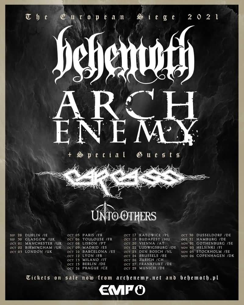 Behemoth, Arch Enemy, Carcass und Unto Others planen zusammen auf 'The European Siege 2021'-Tour zu kommen.