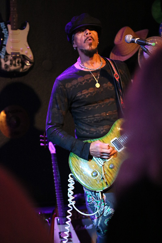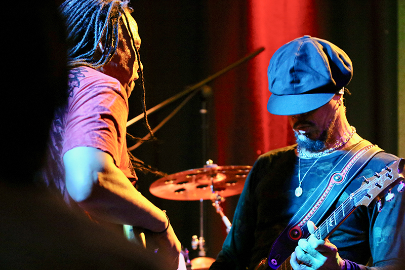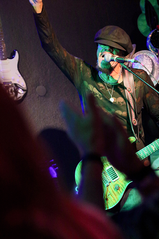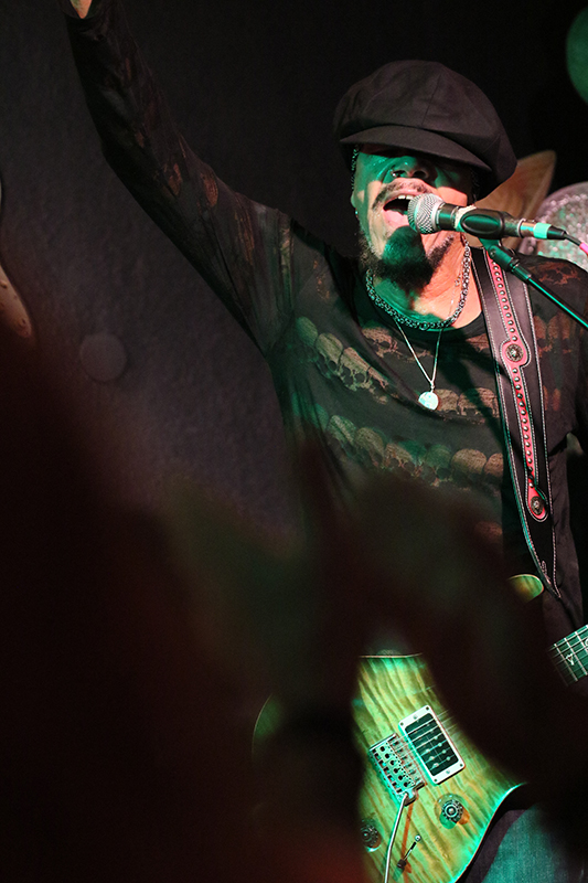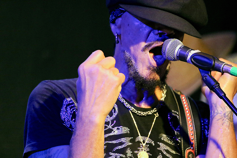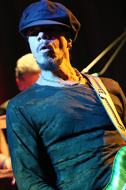 Es hielt ihn quasi nur auf der Stelle, wenn er vor dem Mikrofon stand. Auch sein Gesang wurde leicht verfremdet. John Hayes untermauerte seine Performance ebenfalls durch Mimik und sehr viel Körpersprache. Der Culucu-Publikumschor kam genauso zum Zuge wie der viele und laute Applaus, den die Anwesenden sehr gerne spendierten. Messerscharfe Gitarren-Riffs befanden sich in bester Gesellschaft mit furiosen Fretboard-Fahrten, die so glitzerten wie seine Schuhe. Da kam das Blut in Wallung. Neben Funk und Hard Rock begeisterte John Hayes durch Abstecher in die Psychedelic. Seine Tänze auf den sechs Saiten seines Arbeitsgeräts faszinierten und sorgten für Szenenapplaus. Der Protagonist überraschte die Leute, als er die Gitarrensaiten mit den Zählen spielte. Neben den Balladen sorgten einige Hard Rock-Songs für beste Unterhaltung, wenn man entspannte Phasen einschob. Hier und da steigerte das Trio die Dynamik bis hin zu geradezu furiosen Song-Finalen. Super!