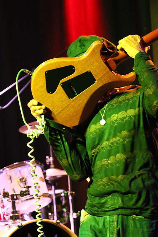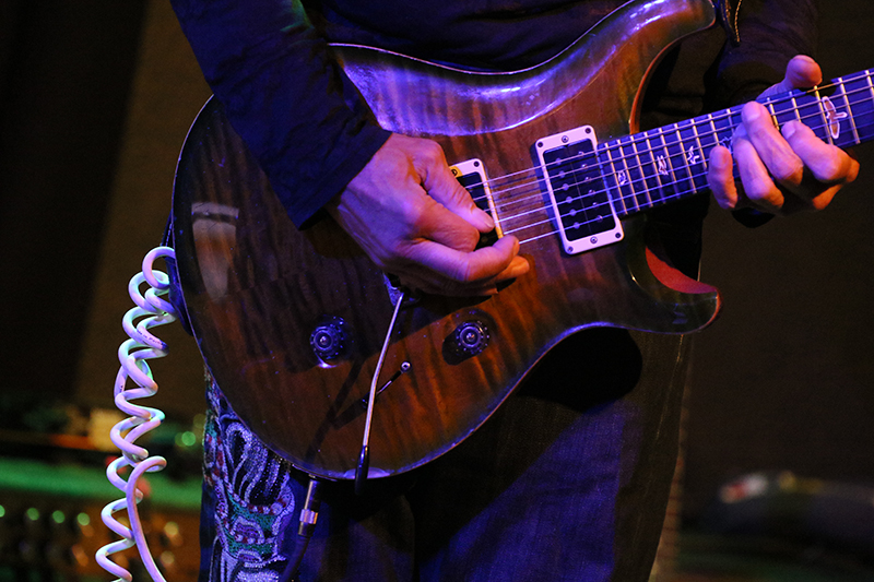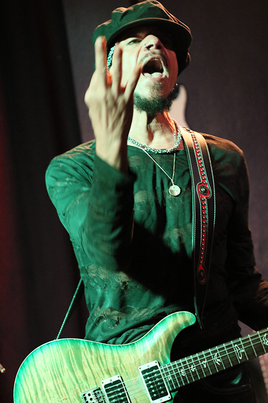 John Hayes' Finger spielten das Fretboard seiner E-Gitarre rauf und runter, er zog die Saiten bis kurz vorm Reißen, brachte zeitweise das Wah Wah-Pedal zum Einsatz, verpasste seinem Sound diverse Klangeffekte und nutzte den Platz auf der Bühne perfekt. Die Flying V-Gitarre kam leider nicht zum Einsatz.