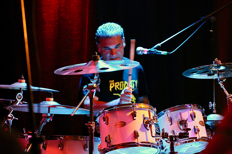 Zusammen mit Louis 'Pepper' Hymans war Schlagzeuger Stevie Alphenaar der Taktgeber. Seine Alleingänge kennzeichneten eine hohe Differenzierung und motivierten die Anwesenden zum Mitklatschen. Sein Solo-Drumming hatte eine hohe Frequenz und so flogen die Drumsticks zweitweise über die Becken und Felle. Beide Daumen hoch! Hinzu kam auch noch, wie beim Bassmann, ein toller Chorgesang. Heftiger Rock bei der Zugabe mündete in heftigen Beifall.