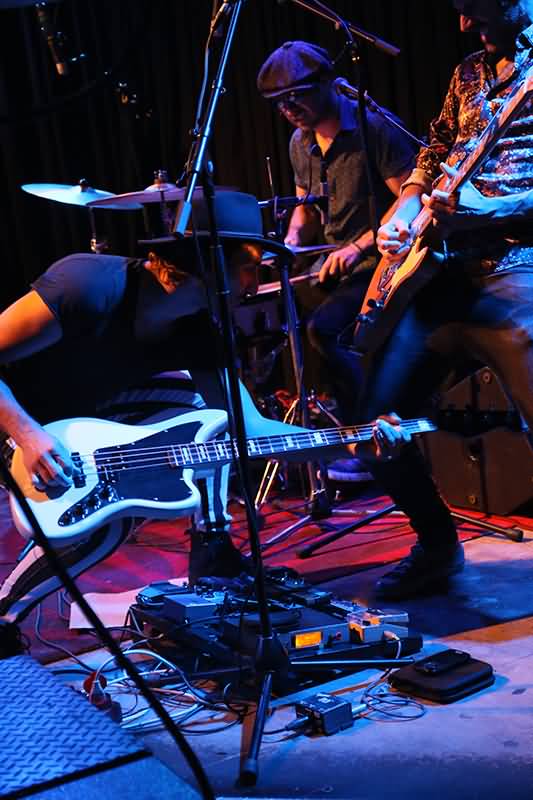 Ein wenig Retro-Soul-Funk servierte das bestens gelaunte Trio in "So Long". Der Bassmann glänzte auch durch höhere Tonlagen. Eine bemerkenswert gute, soulige Falsett-Stimme. Hier wechselten die Lead Vocals innerhalb eines Songs. Perfekt! "The Heat" entpuppte sich als ein balladeskes Zwischenspiel und in "I Want To Take You Higher" von Sly & The Family Stone baute man einen bestechend arrangierten sphärisch-hypnotischen Teil ein. Klasse!