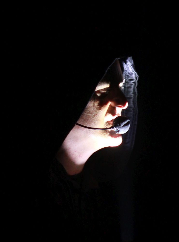 Früh wird klar, dass wir heute Abend einen ausgesprochen agilen und fast kämpferischen Neal erleben werden. Er interpretiert bekanntlich die Hauptrolle des Albums, die Figur des Christ, der sich allerlei Mächten und gefährlichen Figuren ausgesetzt sieht. Diesen Weg, der im übertragenen Sinne ein Stück weit auch das Leben des Neal Morse widerspiegelt, verkörpert er mit unglaublicher Hingabe, Energie und Wucht. Teilweise gespenstisch verfremdet durch eine Art Schweißerbrille (die trägt übrigens auch Mike gelegentlich, der ja für die gruseligen Charaktere der Geschichte einsteht), andererseits durch eine Maske und mit direkter Taschenlampenbeleuchtung singt und musiziert Neal nicht nur, er spielt sie in bester Manier.