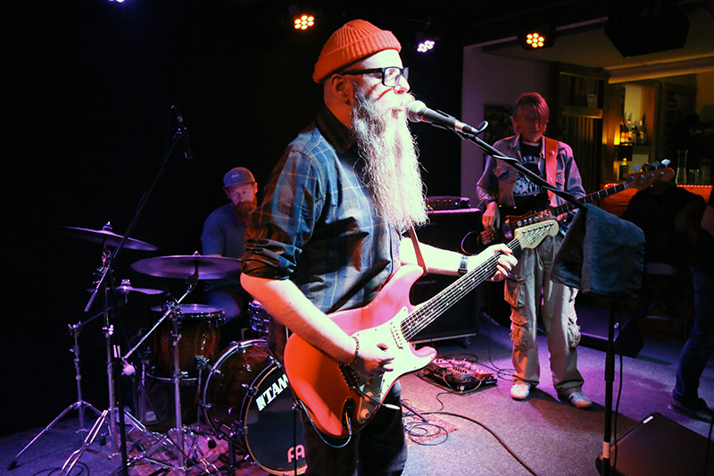 Funk und Psychedelic gaben sich die Klinke in die Hand und Paddy Boy sorgte bei seinen oft auch langen bis sehr langen Solo-Ausflügen fast immer für Szenenapplaus. Mit seinen vielen Hintergrund-Informationen und Geschichten hatte Paddy Boy einen tollen Kontakt zu den Leuten vor der Bühne. Einfach sympathisch. Beim sehr aufmerksamen Publikum kam das immer leiser werdende Spiel auf dem Sechssaiter sehr gut an und beim Rory Gallagher-Lied "Cradle Rock" setzte er das Bottleneck ein. Ehre, wem Ehre gebührt. Mit "Led Boots" verneigte sich das Trio in herausragender Weise vor Jeff Beck. Die Nummer "Paddy’s Big Blues" stand Pate für den herausragend gespielten Slow Blues. Mega hinreißende Emotionen flossen aus der Seele des Gitarristen, der seinem Arbeitsgerät hier auch einen herrlichen Chorus-Klang verpasste. "Spaghetti" glänzte durch tonnenschweren Blues nach Chicago-Rezeptur und bei den Zutaten war auch eine gehörige Portion Fuzz angegeben. Der Frontmann ging in die Tiefen des Blues, ein Statement in Sachen Zwölftakter. Das Konzert hatte einen tollen Lauf und war von Feinheiten wie auch Wucht gekennzeichnet. Entertainment auf höchstem Niveau, bei dem Paddy Boy Zimmermann die Hauptrolle zukam.