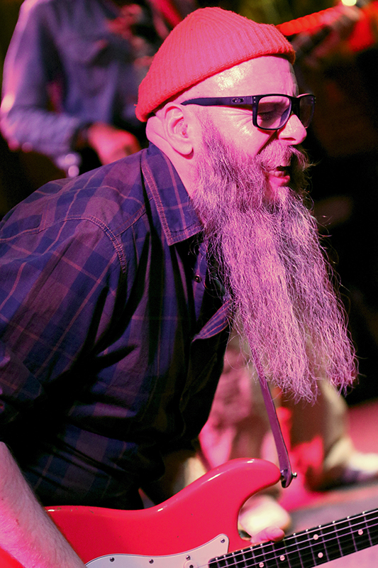 Was der Bandleader dem Publikum auf seiner E-Gitarre bot, war die hohe Kunst der Saiten-Zauberei. Im positiven Sinn Wahnsinn. Unglaublich, welche Akrobatik er auf dem Fretboard bot und der Gitarrist war geradezu ein Meister im Kreieren von Klang-Effekten, die er oft mit dem Tremolohebel, dem Wah Wah-Pedal oder über Effektgeräte sehr geschickt in Szene setzte.