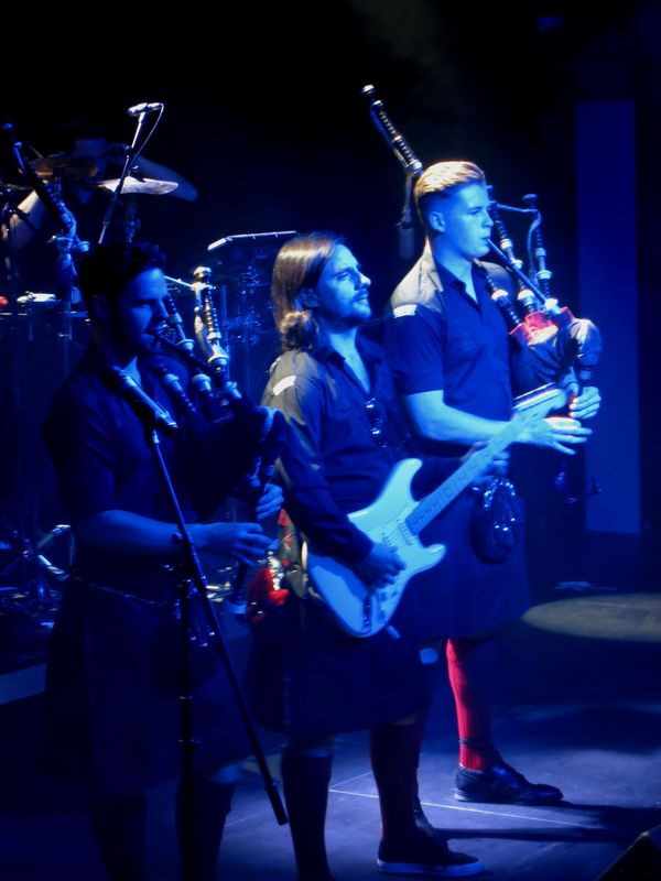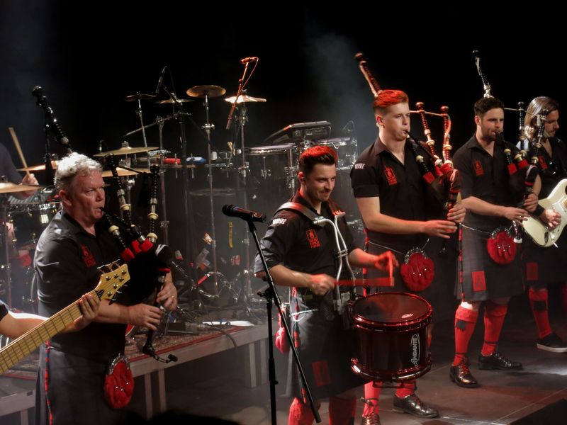 Dann zunächst einige Fakten zur Show: In diesem Jahr feierte die Band ihr fünfzehntes Bandjubiläum und konnte letztlich ihre wahrscheinliche Einzelstellung als Vertreter des Bag Rocks unter Beweis stellen. Auf dem Fundament von Gitarre, Bass und Schlagzeug, unterstützt von Keyboards und Perkussion, waren es drei Dudelsackspieler, die diese besondere schottische Klangfarbe einbrachten. Leider hat man offensichtlich versäumt, intensiver auf dieses Jubiläum einzugehen, es wurde lediglich beiläufig erwähnt.